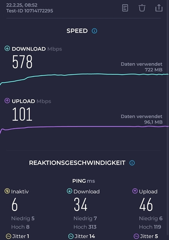 Da die Internetverbindung nun über Glasfaser hergestellt wird, ist nun auch sehr schnelles Internet mit 500 Mbit/s Download und 100 Mbit/s Upload für Sie gebucht und somit sind alle üblichen, datenintensiven Internetnutzungen wie Streaming der Lieblingsinhalte nun auch ohne Probleme möglich.
