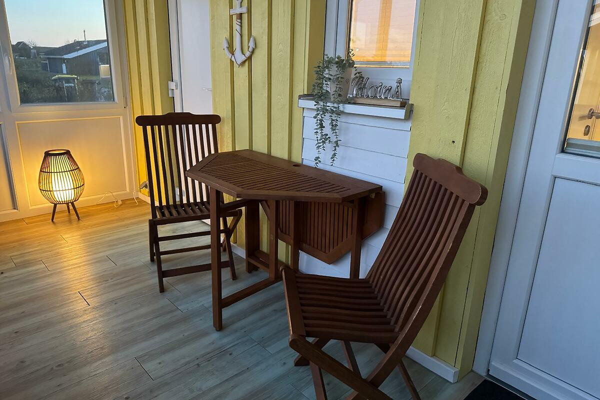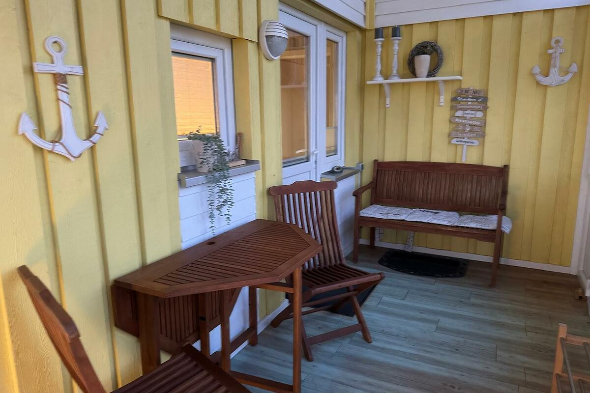 Hier steht eine komplette Möblierung mit Klapp-Tisch für 2 - 4 Personen, 2 Stühlen und einer Sitzbank zur Verfügung, Schuhregal und ausreichend Platz für Ihre Garderobe. Bei morgendlichen Sonnenschein der ideale Ort für ein erstes Heißgetränk in der Sonne, auch in noch kalten Jahreszeiten.